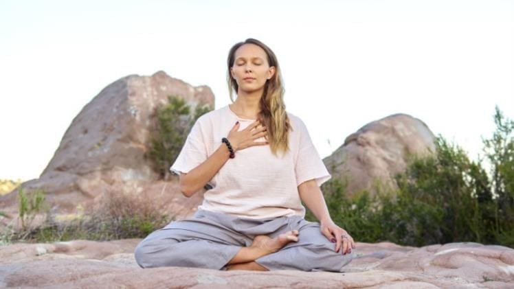 - Sit or lie down with a straight spine. Relax your shoulders, close your eyes, and bring your attention to the present moment.